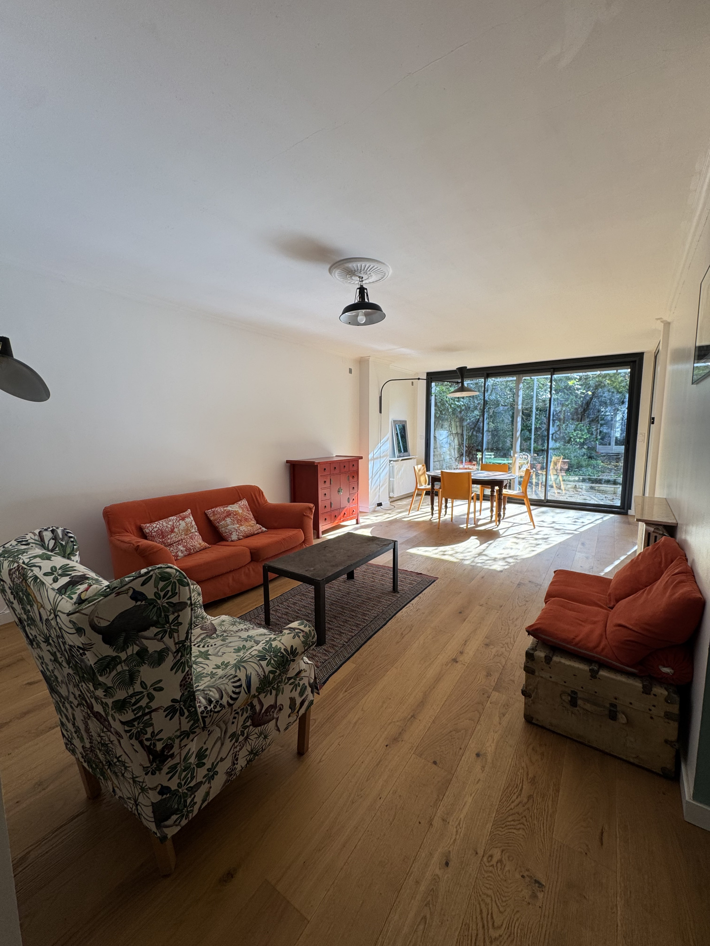 L’espace extérieur, rare en centre-ville, comprend un jardin arboré avec terrasse, offrant un cadre de vie paisible et sans vis-à-vis notable. Une dépendance vient compléter l’ensemble.