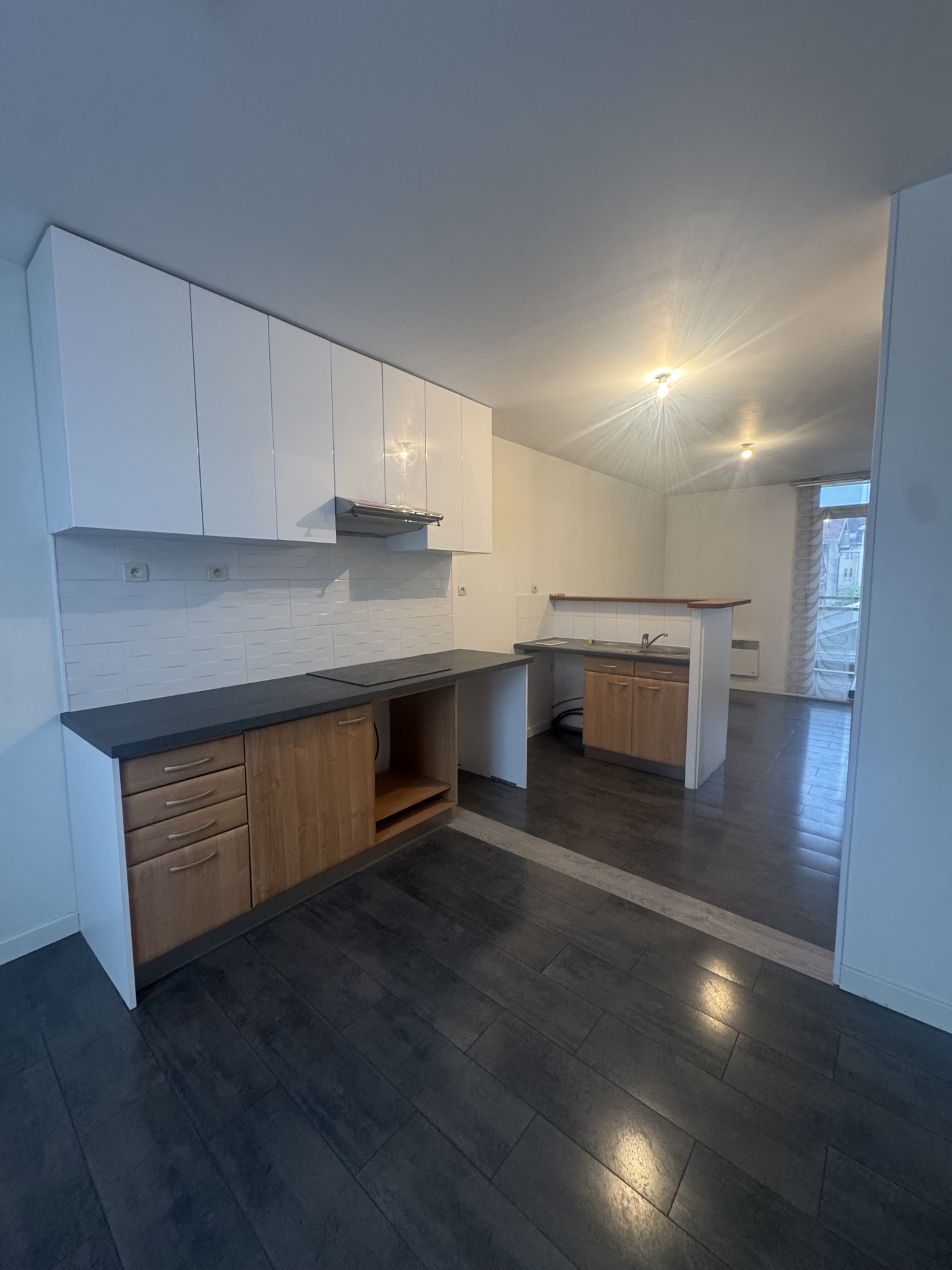 A saisir dans une monoprorpiété calme, grand T2 de 52m² comprenant une pièce à vivre, une grande cuisine ouverte semi équipée et aménagée avec placards, une salle de bain, une chambre avec placards, WC séparés et une grande terrasse couverte. Premier étage sans ascenseur.
