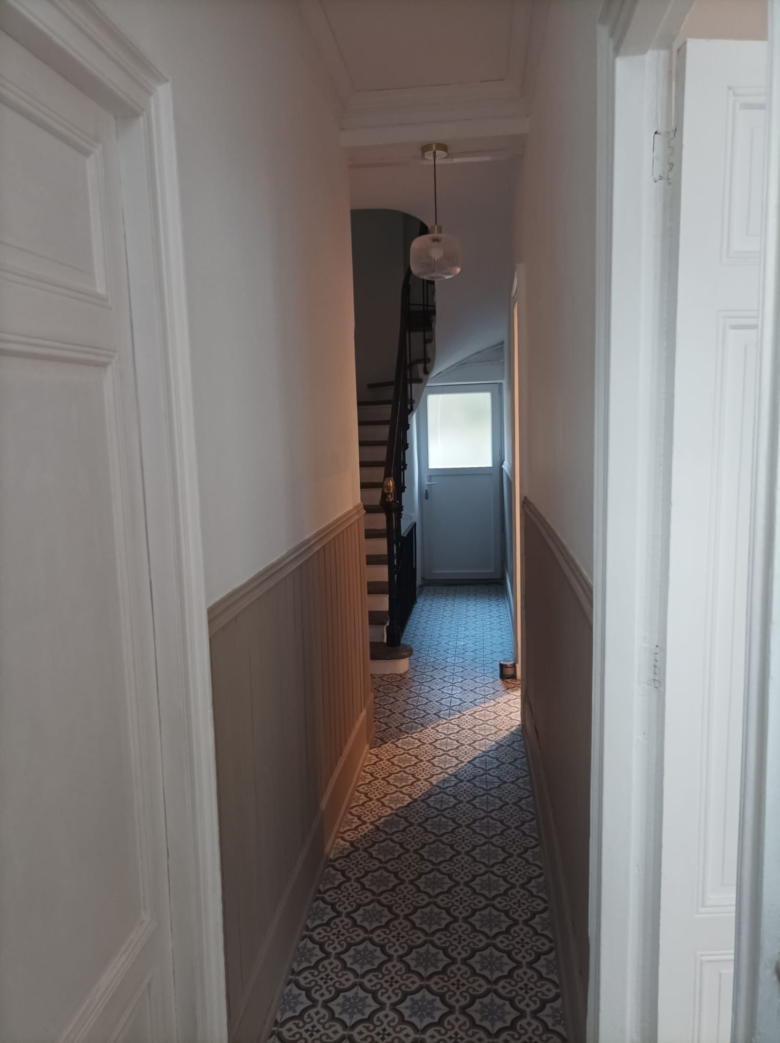 Dans une rue calme, échoppe rénovée de 91m² habitables, comprenant : une entrée, un séjour, un bureau, 3 chambres, une cuisine aménagée, une salle de bains avec baignoire et douche. une cour privative